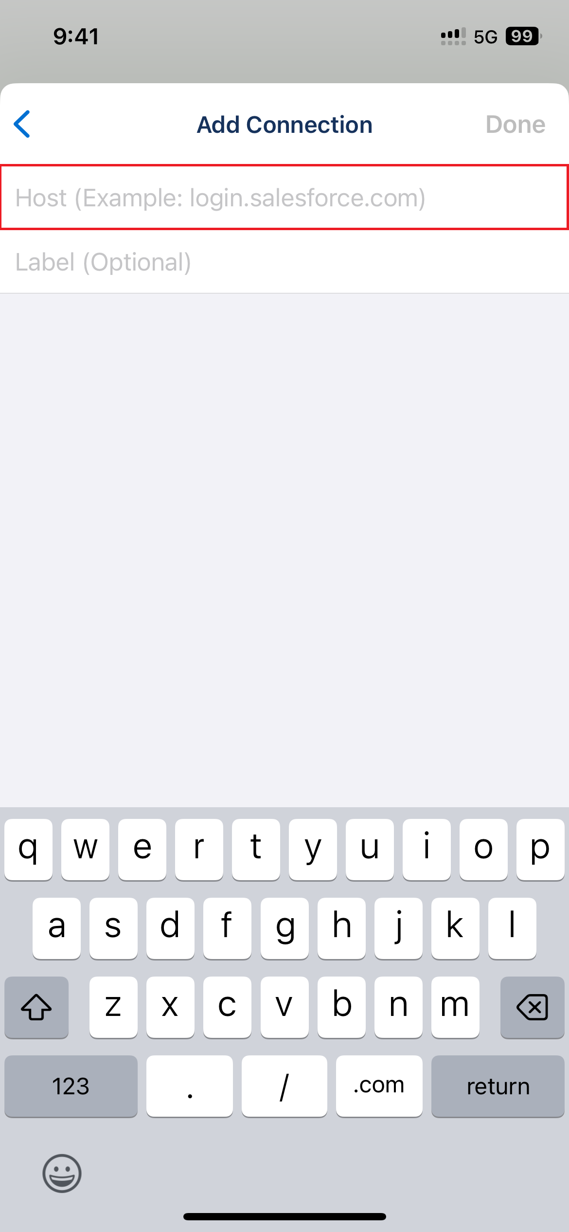 3. Enter ymcahbb.my.salesforce.com in the host field